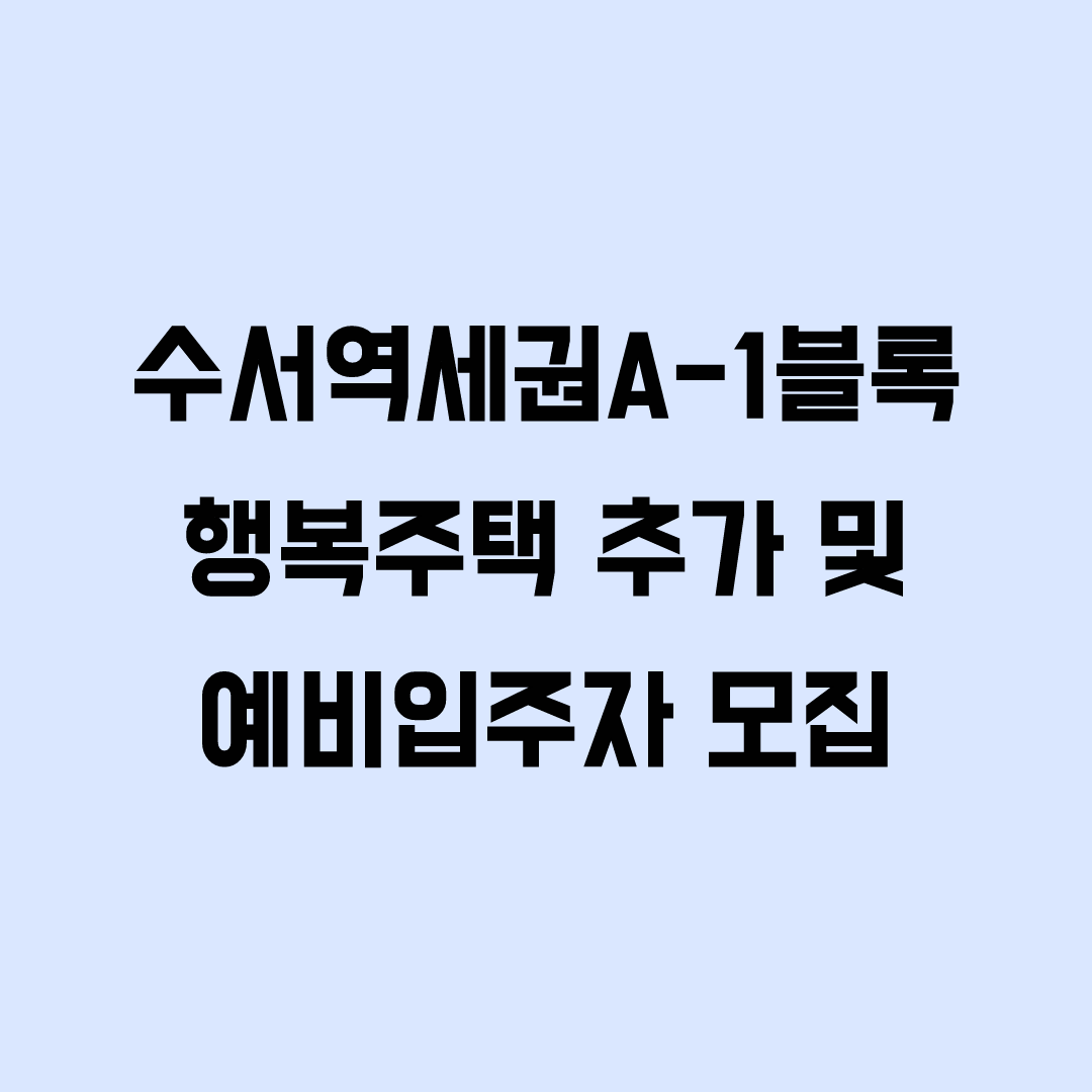 수서역세권 A1블록 행복주택 추가 및 예비입주자 모집 (행복주택 입주자모집공고)